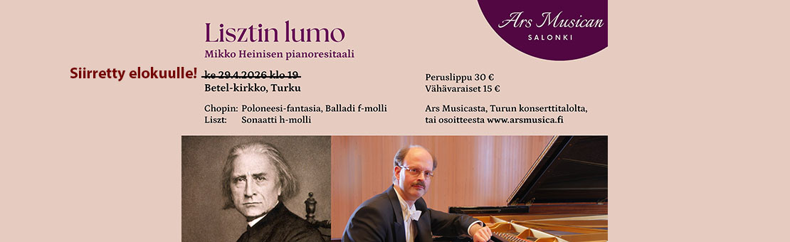 Ars Musica Oy on yritys, jossa yhdistyy klassisen musiikin äänitteet, konserttielämykset, musiikinopetuksen osaaminen. Yritys on kasvanut vuosien varrella merkittäväksi toimijaksi kulttuurin alalla. Uudessa verkkokaupassamme tarjoamme monipuolista osaamistamme. Sisältö päivittyy jatkuvasti, joten seuraa toimintaamme verkossa, Kulttuurikaupassa ja muissa kanavissa.